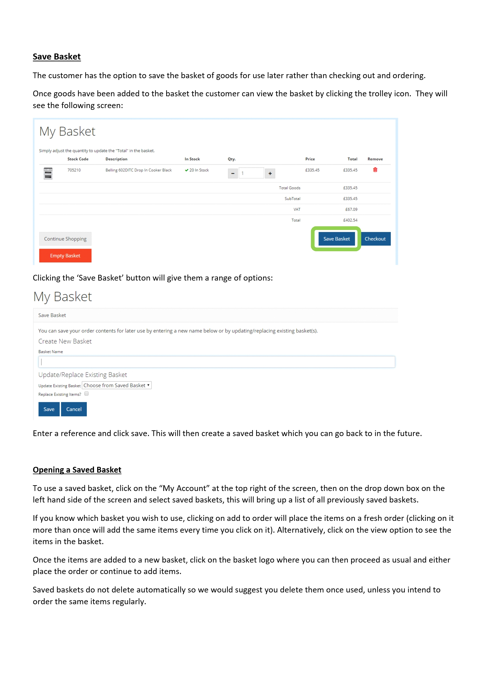 Saved Baskets